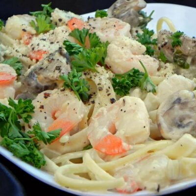 Baked Seafood Fettuccine