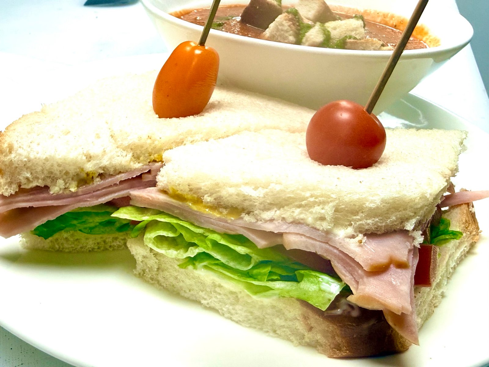 It comes with lettuce, tomato, mayo, and your choice of turkey/ Ham/ Beef/ chicken on white/ brown / rye bread